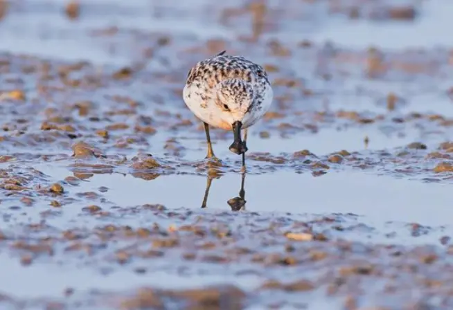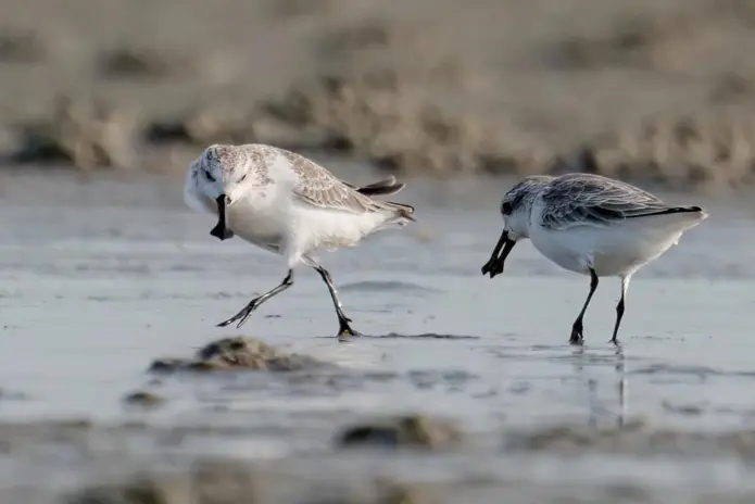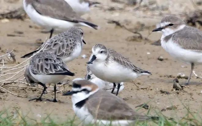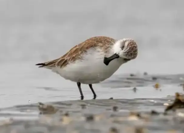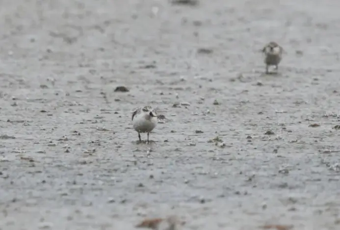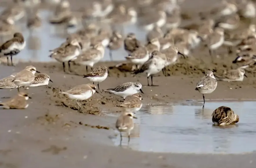 数以千计的鸻鹬类水鸟在退潮后的滩涂上忙碌着,突然,他的目光定格在一小群行为独特的小型水鸟身上。