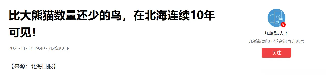 信息来源:九派观天下《比大熊猫数量还少的鸟鼎合网,在北海连续10年可见!》2025-11-17